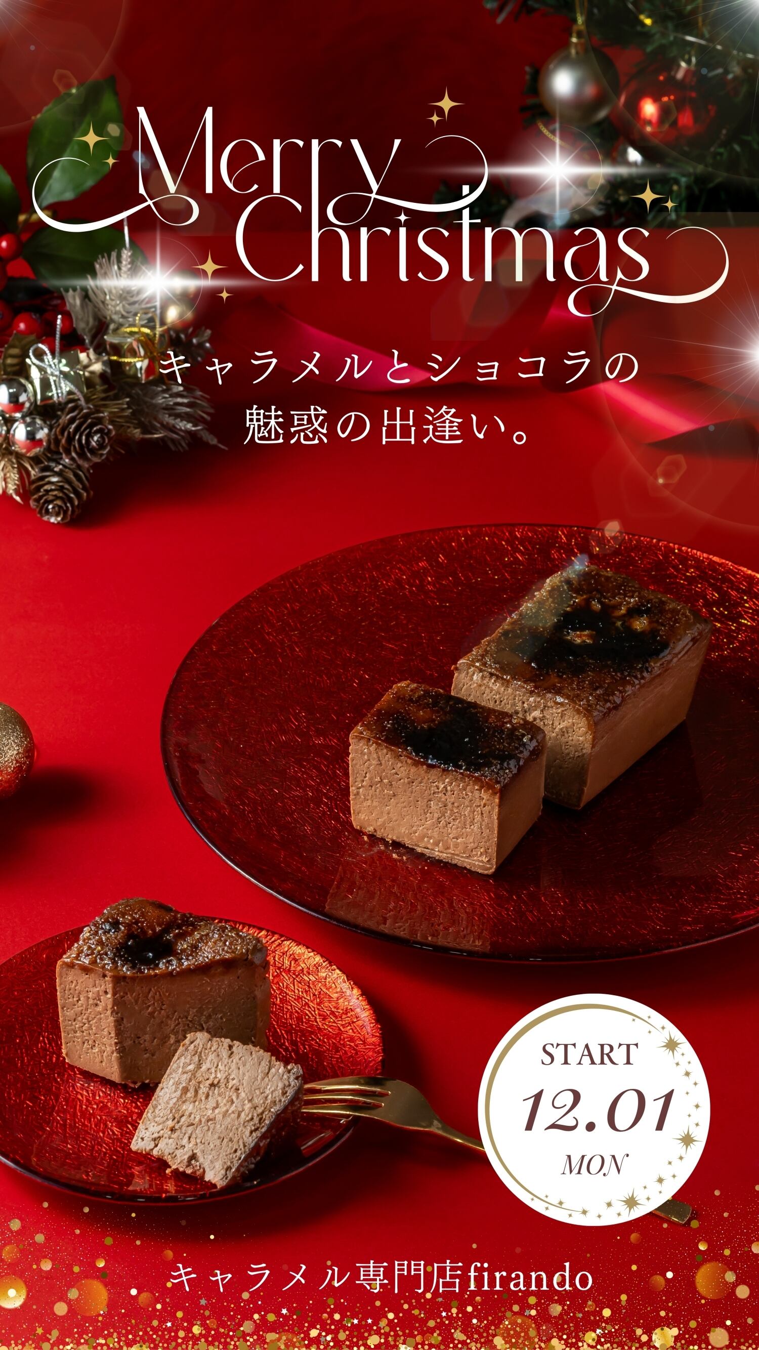 ホリデーシーズンに向けて、firandoがお届けする、この冬だけの特別なスイーツ 「ショコラキャラメルバスク」。