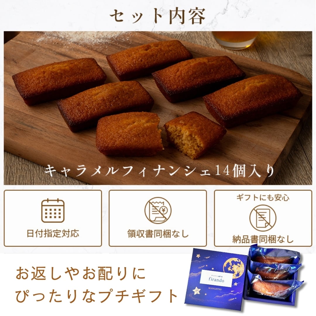 firandoシグネチャーキャラメルを合わせた、キャラメルフィナンシェボックスをご用意しております。