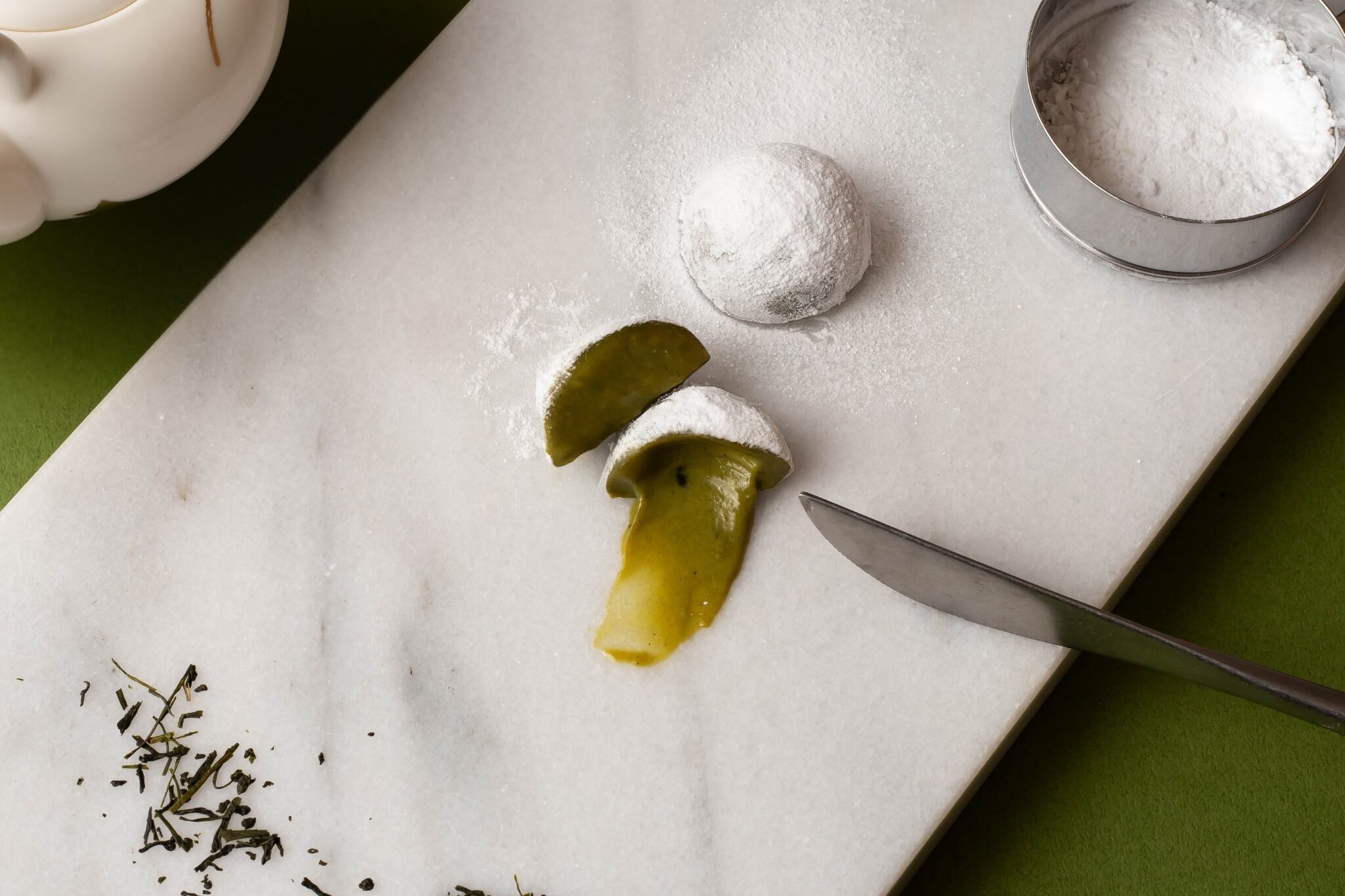 深い濃茶の味わいが広がる、お茶の香りとキャラメルのマリアージュを堪能してください。