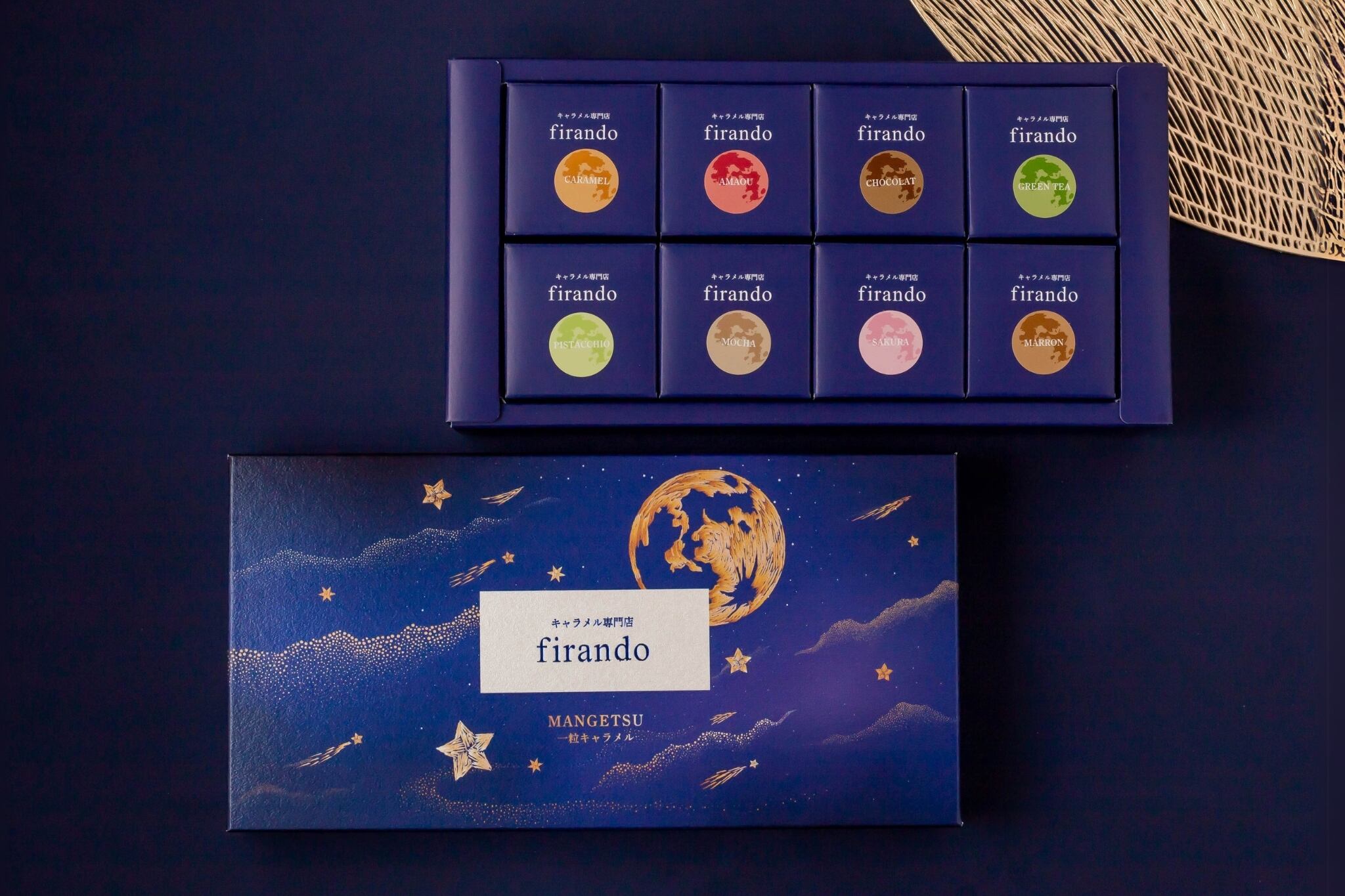 小箱が8つ、煌めくネイビーの満月夜のパッケージに並びます。